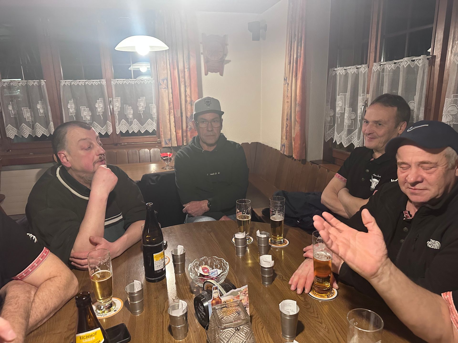 Zum diesjährigen Fasnachtshock trafen wir uns in der Mühle zu einem gemütlichen Zusammensein. Es wurde getrunken, geplaudert und von einzelnen auch geplöfft. Unsere Gespräche wurden über die Fasnacht, die Geschäfte, das Geburtstagsfest von Tschüdi und sogar über Pilze geführt.